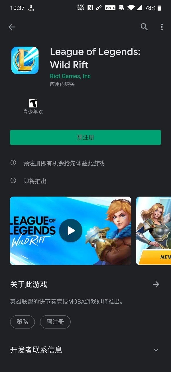 據了解,《英雄聯盟》手游已經上線Google Play商店,并開啟預注冊。