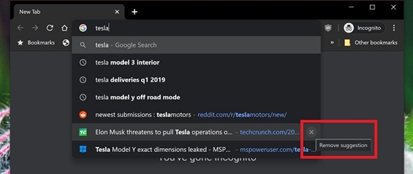 當你將鼠標懸停在某個條目上方的時候,Omnibox 會在界面右側顯示一個“×”記號 —— 輕點鼠標即可完成操作、無需再使用繁瑣的組合鍵。