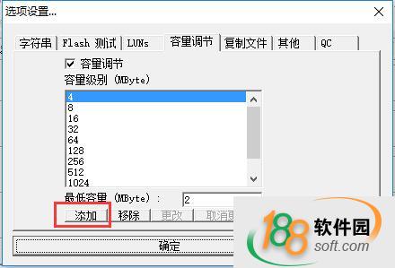 (3)請選擇“容量調節”,在這里選擇你的 U 盤的容量;如果在這里沒有你所要的容量,請單擊“添加”,填寫你所需的容量。