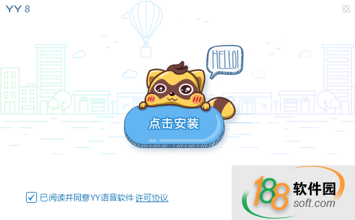 一、在188軟件園下載YY語音安裝包,雙擊運行。