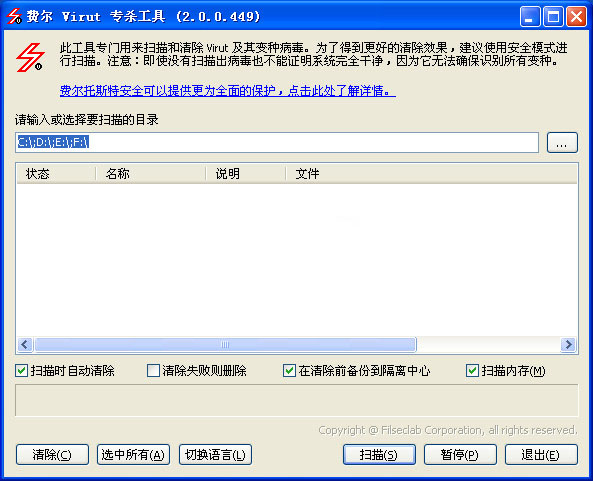 此工具專門用來掃描和清除Virut及其變種病毒。它專殺今年大出風頭的“變形毒王w32.virut”~ 采用了啟發技術能脫離病毒庫自動識別這個病毒的大多數變形,清除成功率高,,能